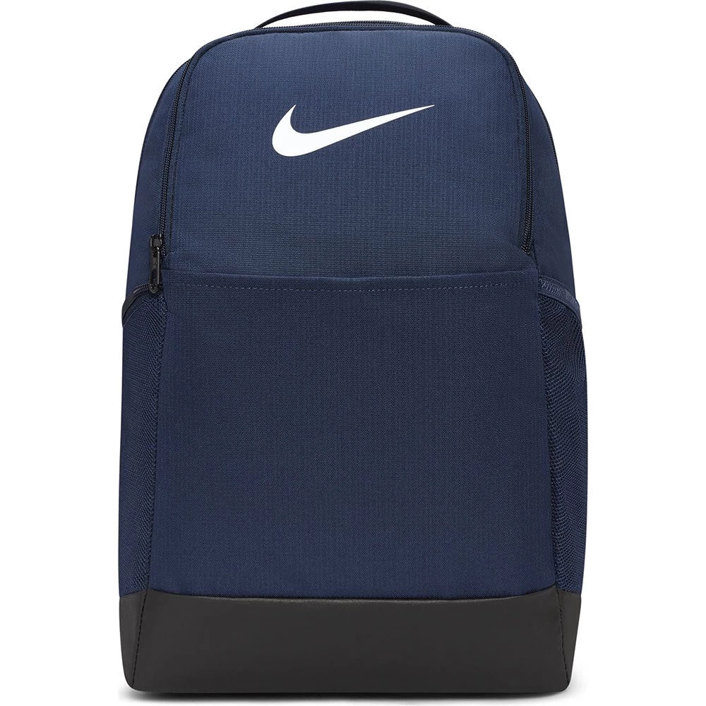 The Nike backpack is smart and functional. It has side pockets with a main zip pocket.